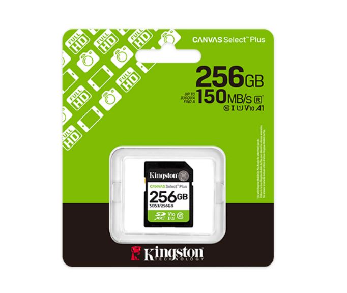Kingston 256GB SDXC muistikortti Canvas Select Plus, Class10 UHS-I V10 – 100 MB/s