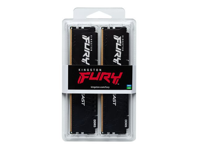 Kingston FURY Beast – DDR5 – pakkaus – 64 Gt: 2 x 32 Gt – DIMM 288 nastaa – 3000 MHz / PC5-48000 – CL30 – 1.4 V – puskuroimaton – on-die ECC – musta