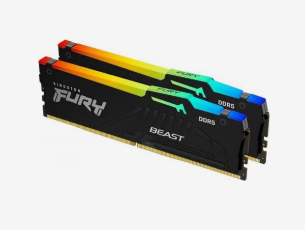 Kingston FURY Beast 2x 16GB DDR5 RGB muistikitti tarjoaa lisää suorituskykyä ja tyyliä suurilla nopeuksilla, aggressiivisella muotoilulla ja RGB-valaistuksella, joka kulkee moduulin pituussuunnassa tasaisia ja upeita tehosteita varten. Siinä on Plug-and-Play-automaattinen ylikellotus suurilla nopeuksilla, ja se on sekä Intel XMP -valmis että valmis AMD Ryzenille. FURY Beast RGB pysyy viileänä tyylikkään, matalaprofiilisen lämmönjakajan ansiosta.