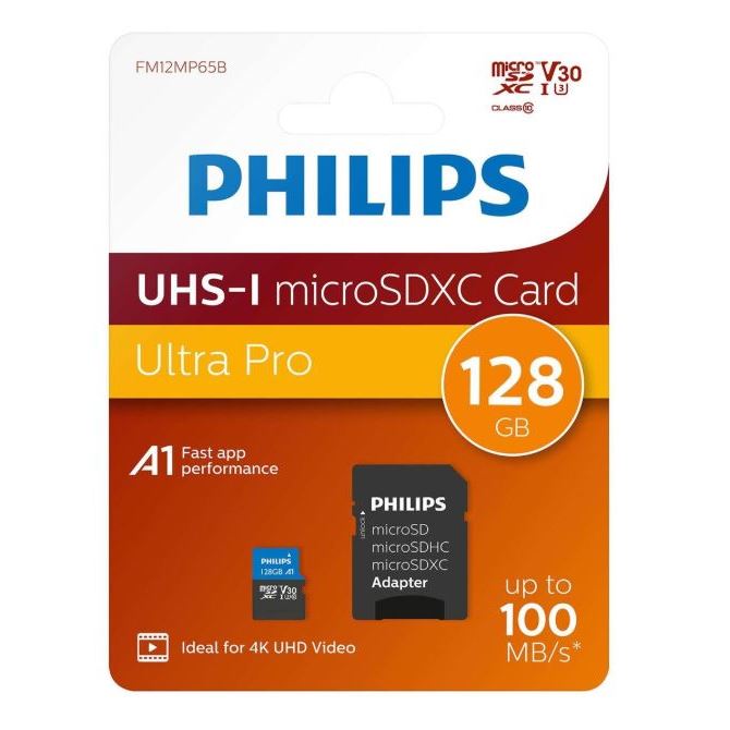 Philips 128GB microSDXC -muistikortti on nopea ja varma valinta, kun tarvitset sujuvaa tallennusta esimerkiksi puhelimeen, tablettiin, actionkameraan, droneen tai navigaattoriin. Kortin UHS-I-väylä ja jopa 100 MB/s lukunopeus tekevät kuvien, videoiden ja tiedostojen siirrosta nopeaa.  Muistikortin U3 ja V30 luokitukset on suunniteltu vaativaan käyttöön ja vakaaseen videotallennukseen – erityisesti 4K UHD -kuvaukseen. Lisäksi A1-luokitus parantaa sovellusten suorituskykyä, kun käytät korttia microSD yhteensopivassa Android-laitteessa.