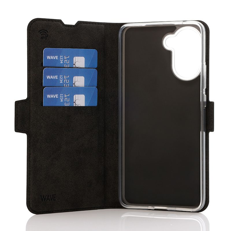 Wave Book Case musta suojakotelo OnePlus Nord CE5 puhelimelle.
