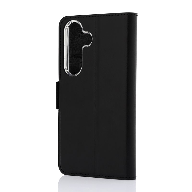 Suojakotelo on täydellisesti räätälöity Samsung Galaxy S25 5G -puhelimelle. Kaikki painikkeet, kamerat ja liitännät ovat helposti käytettävissä koteloa irrottamatta. Kotelon pintamateriaali on laadukasta nahkaa, ja puhelimen pidikeosa on valmistettu kirkkaasta ja kestävästä PC-muovista. Väri musta.