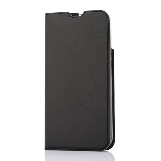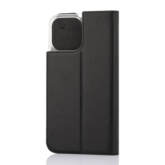 WAVE Book Case suojakotelo iPhone 13 Pro Max puhelimelle. Magneettisulkuinen kansi, korttipaikat RFID suojauksella ja läpinäkyvä muovikelkka (PC). Pintamateriaali laadukasta nahkaa.