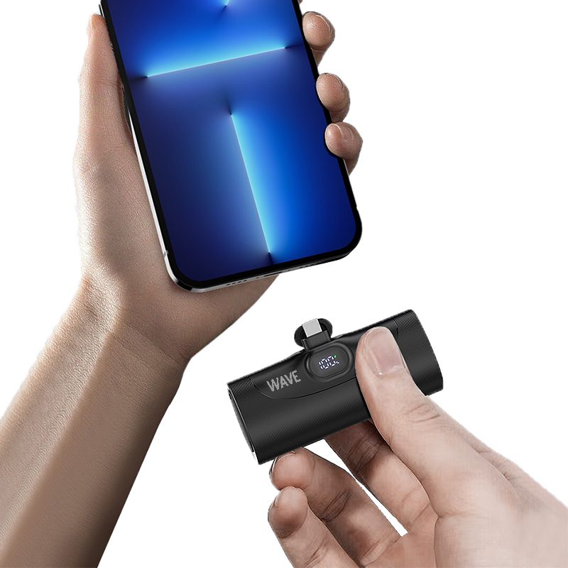 Wave GoPower on äärimmäisen pienikokoinen ja näppärä lisävirta, joka kiinnittyy suoraan puhelimen latausliittimeen ja lataa kaikki USB Type-C yhteensopivat laitteet vaivattomasti ilman latauskaapeleita. Integroidun tukijalkansa ansiosta varavirta muuntuu tarvittaessa myös telineeksi esimerkiksi videoiden katselua varten. Voit halutessasi ladata laitteitasi myös varavirran toisen USB Type-C liitännän kautta yhteensopivaa kaapelia käyttämällä.